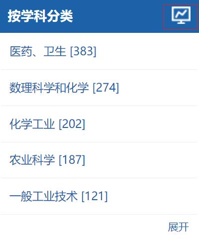 用户在折线图内选择具体的学科,系统将根据用户的选择在进一步对科技报告的数据进行检索,实现多层检索条件的叠加显示功能。