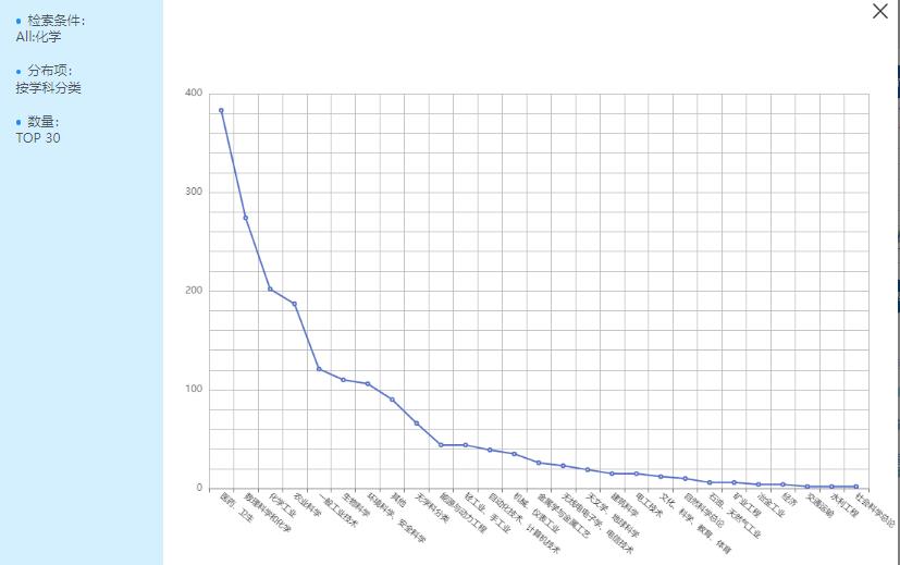 系统将根据用户的检索条件,以折线图的方式展示TOP30的数据进行展示,如图所示: