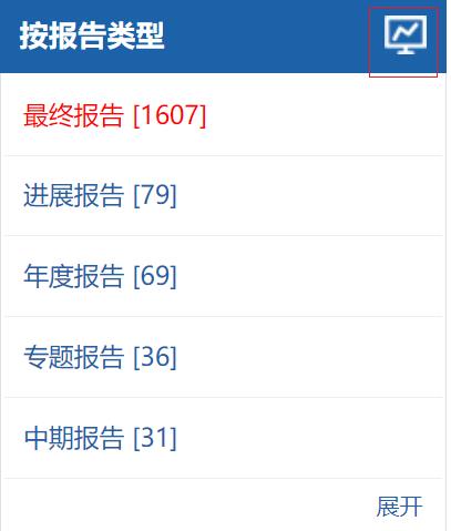 左侧:只能聚类按(年度分类、计划分类、学科分类、报告类型、计划类型)对报告进行导航。