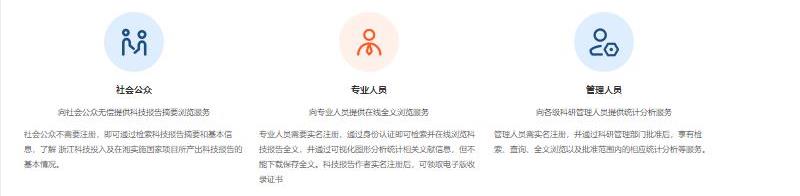 陕西省科技报告服务系统主要针对以下3类用户开展服务。目前开通了针对社会公众、专业人员和管理人员三类用户的服务,请根据需要点击。