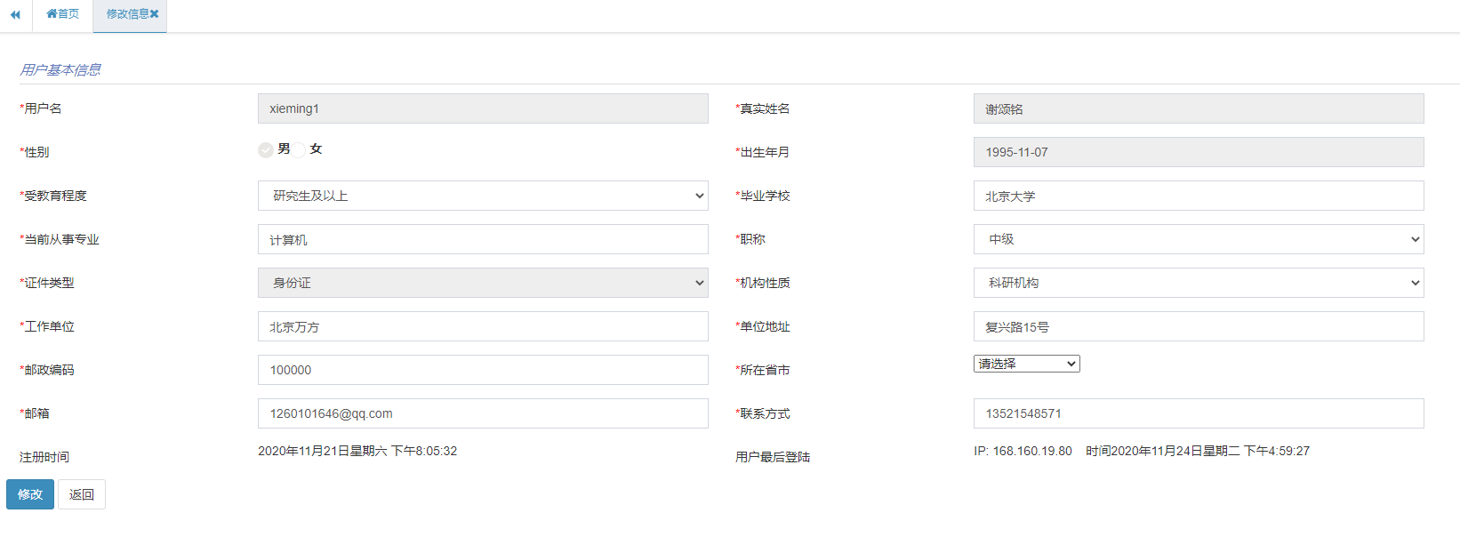 用户按提示输入用户名和验证码成功提交之后,进入注册验证信息界面。如图: