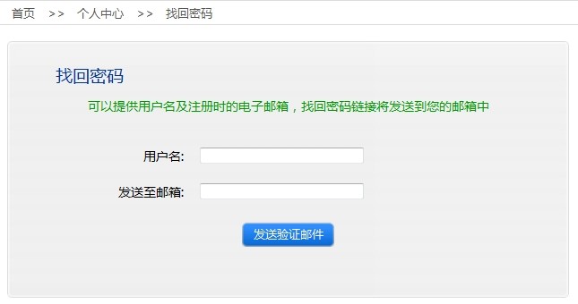 用户需输入注册时的用户名和密码,点“发送验证邮件”按钮,查收邮件。