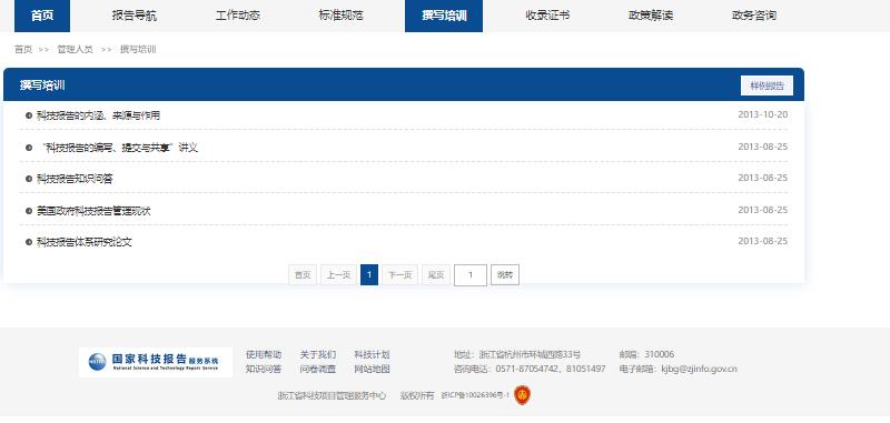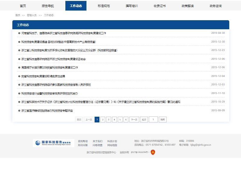 管理人员首页大致分为三大部分:导航栏(首页、报告导航、工作动态、标准规范、撰写培训、
