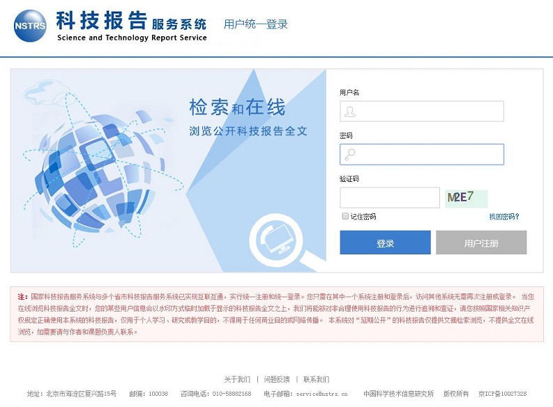点击“管理人员”,作为管理人员您登录后,可以使用报告统计分析功能,检索浏览公开科技报告全文。
